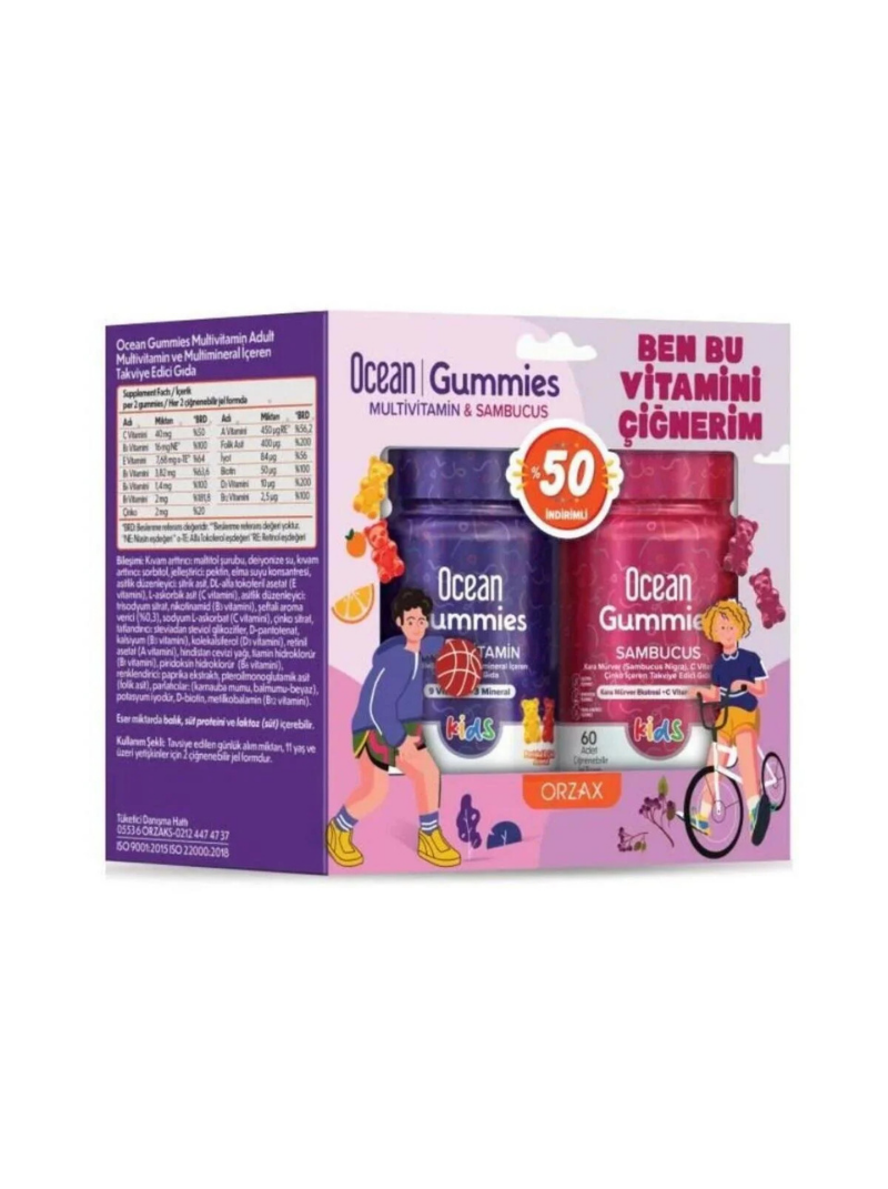 Orzax Ocean Gummies Multivitamin Kids 60 Adet Çiğnenebilir + Ocean Sambucus Kids 60 Adet Jel Form
