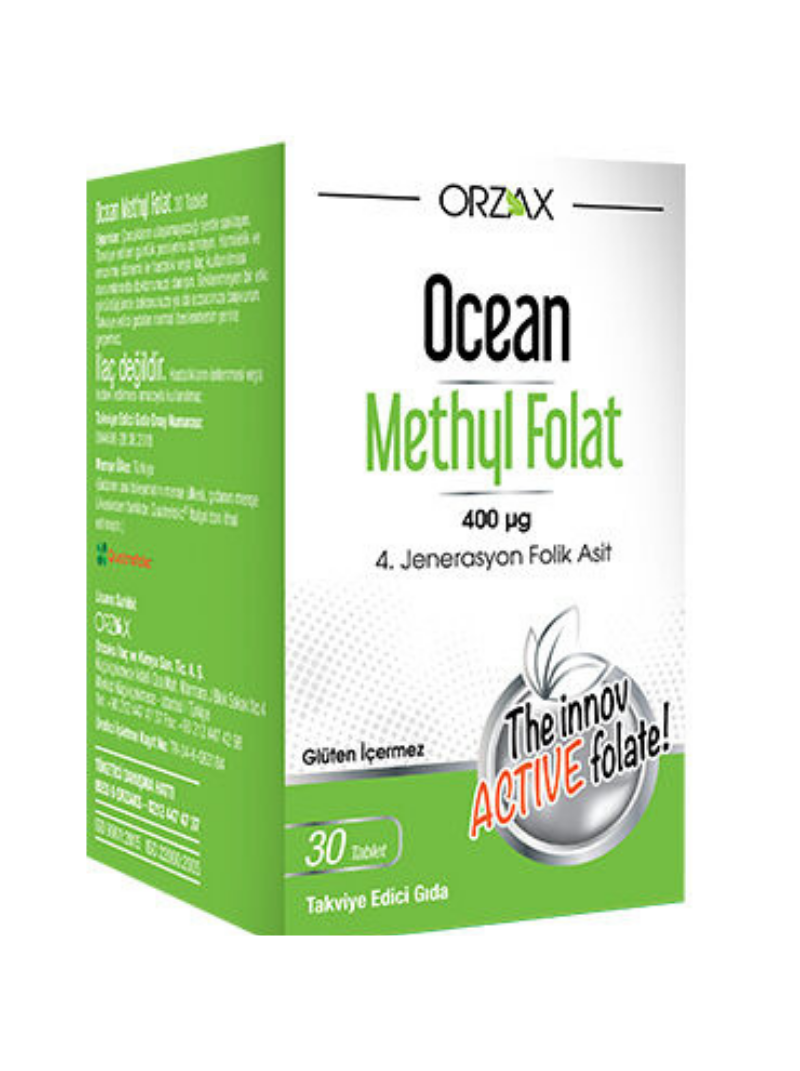 Orzax Ocean Methyl Folat 30 Tablet, folik asidin aktif formu olan 5-MTHF (metilfolat) içeren takviye edici gıdadır. Geleneksel folik asit formlarına kıyasla vücut tarafından doğrudan kullanılabilen bu form, özellikle folat metabolizmasıyla ilgili genetik farklılıkları olan bireyler için avantaj sağlar.