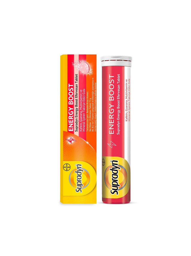 Yoğun tempo, stres ve yetersiz beslenme; gün içinde enerji düşüklüğü ve yorgunluk hissine neden olabilir. Supradyn Energy Boost Efervesan 15 Tablet, suda çözünen pratik formu ve zengin vitamin-mineral içeriği ile günlük enerji ihtiyacınızı desteklemeye yardımcı olur.